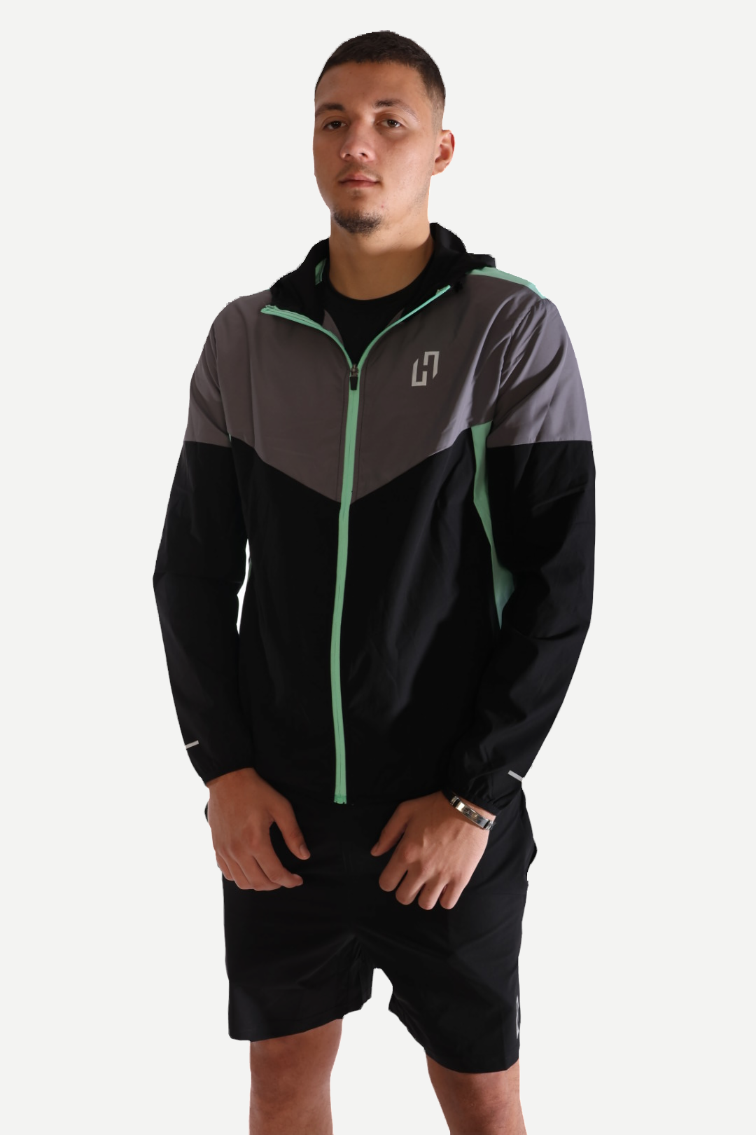 Three-piece set in Black, Light Blue & Light Gray. Sizes XS–XL.