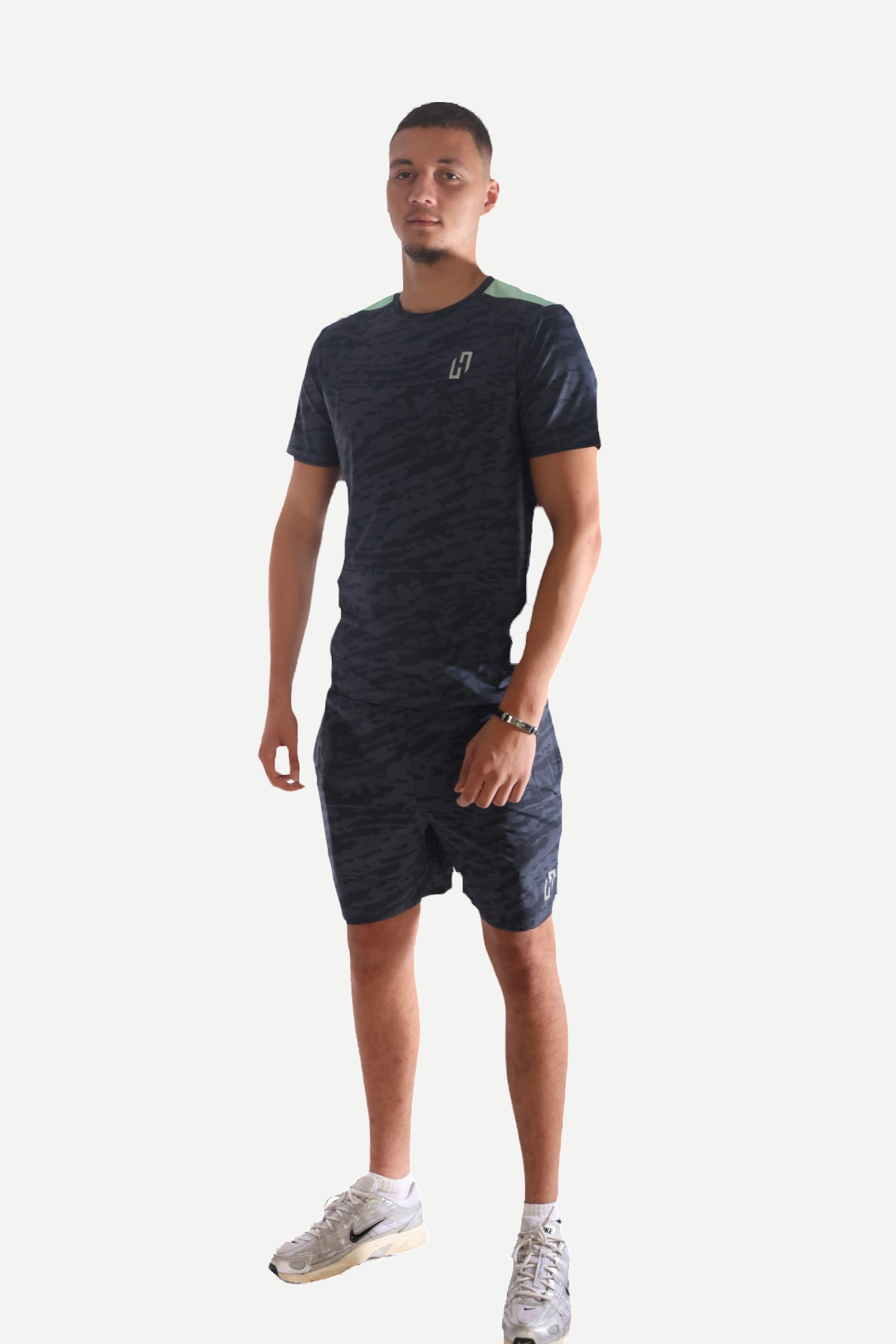 Three-piece set in Black Tiger. Sizes XS–XL.